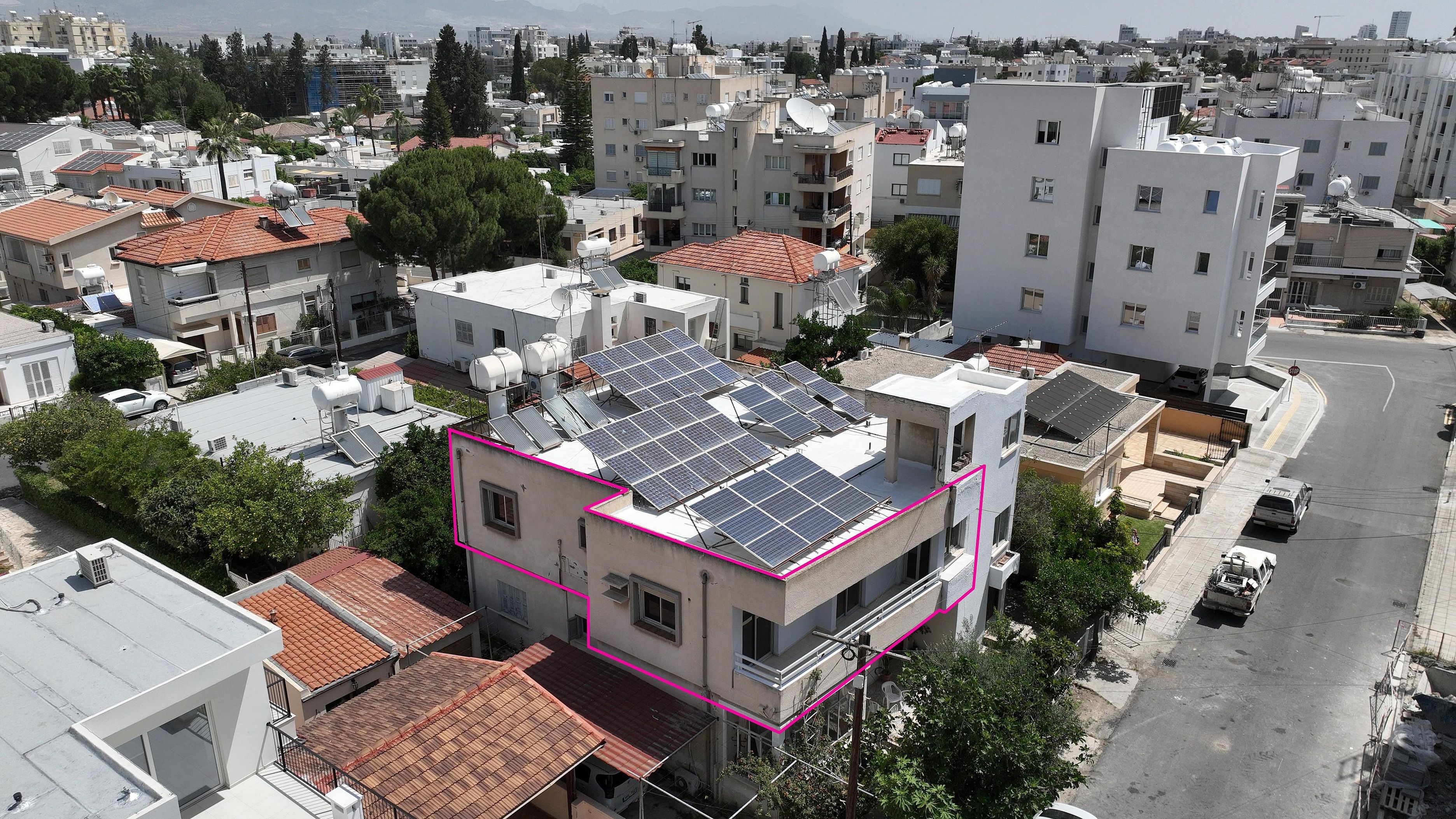 Situated on Kosti Palama Street, the property enjoys a prime location just 75 meters north of Georgiou Griva Digeni Avenue, 180 meters east of 25th March Avenue, and approximately 340 meters northwest of Metochi Kykkou.
